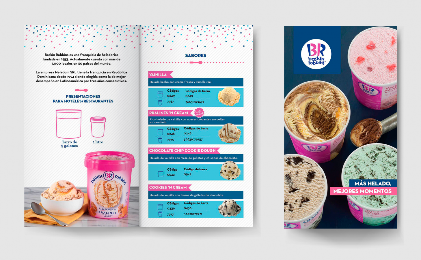 Diseñar el catálogo de productos de la cadena de helados Baskin Robbins. Diagramación visualmente atractiva de las ofertas y productos que ofrece Baskin Robbins